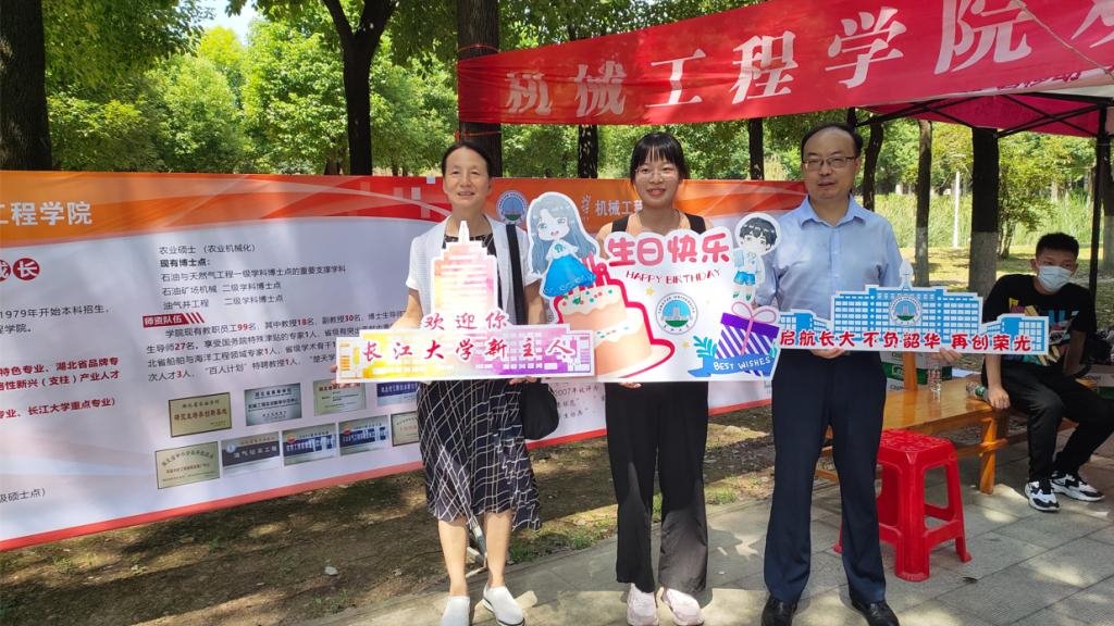 “这个生日太惊喜,太有意义了!”9月4日,工业设计新生邵雨霏独自乘火车到荆州报到。早上8点,新生辅导员向如老师就电话告知她今天是她的生日。上午10点半,院长管锋、党委书记王红艳来到迎新点,看望和慰问志愿者,静候邵雨霏同学的到来。上午11点半,邵雨霏一路辗转终于来机械工程学院迎新点,院长管锋、党委书记王红艳与她合影并送上生日礼物,有学院领导老师专门为自己庆祝生日她感到非常高兴。