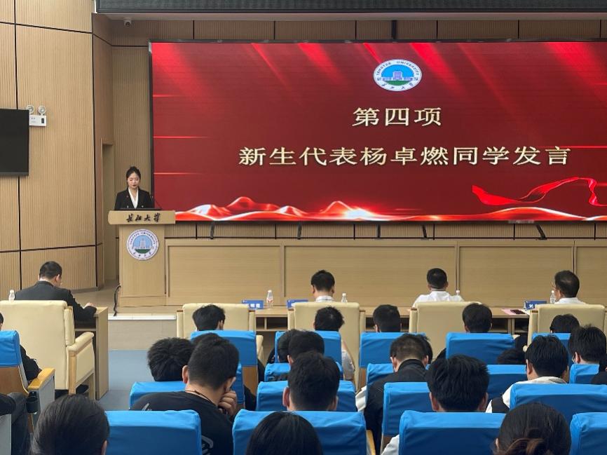 2025级新生代表杨卓燃表达了对研究生阶段的憧憬,承诺将恪守“长大长新”校训,秉持严谨求实的学风,脚踏实地、锐意进取,努力成长为担当民族复兴大任的时代新人。
