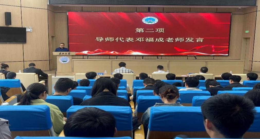 导师代表邓福成教授结合自身科研与教学经验,寄语新生尽快实现从“学习者”到“探索者”的角色转变。他鼓励同学们主动与导师沟通,广泛阅读文献,勇于迎接科研挑战,在独立思考与实践中提升学术能力,实现个人成长与社会需求的有机结合。