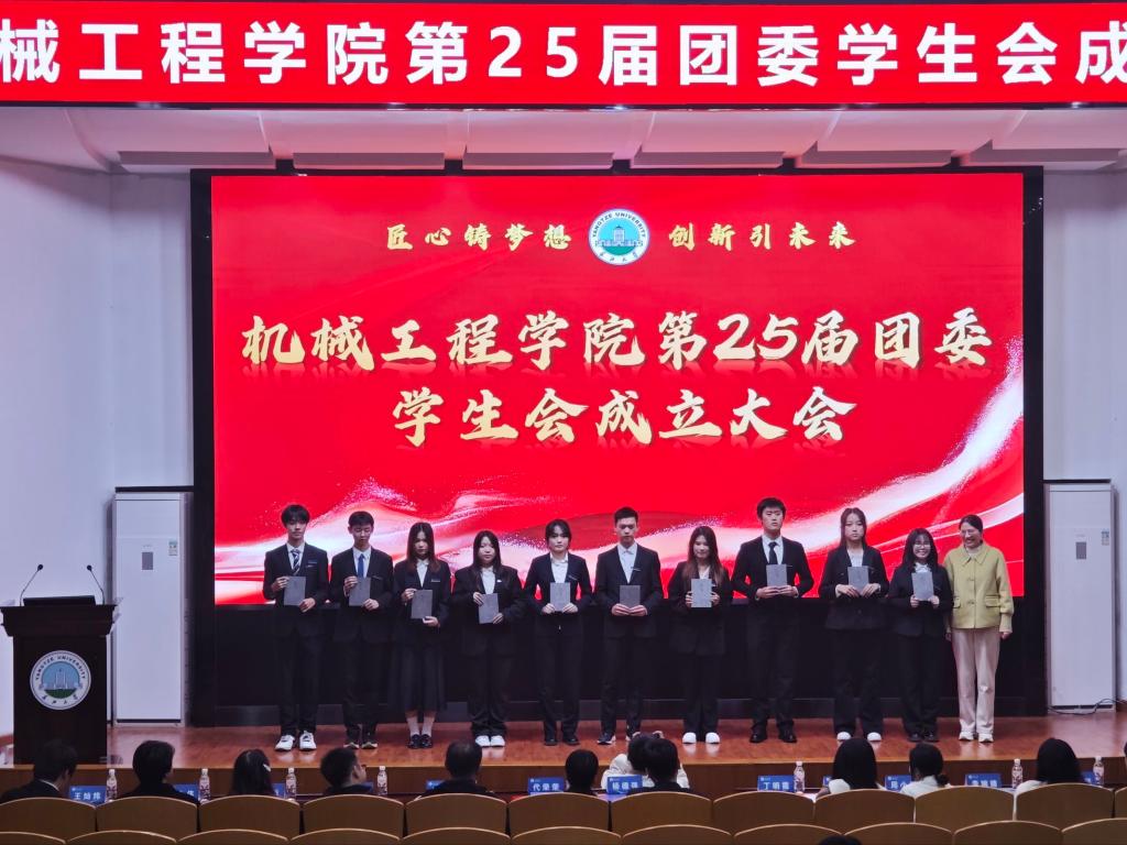 团委书记吴钐宣读新一届学生会聘任文件,明确了第25届团委学生会组织架构。随后,24届团委学生会主席王灿炜向25届团委学生会主席李佳文进行共青团团旗交接。杨德强、丁明霞、代荣荣、吴钐几位老师分别为主席团、部长及副部长们授牌赠书,新一届学生会主席团、部长及副部长接过聘书与书籍,正式履职。