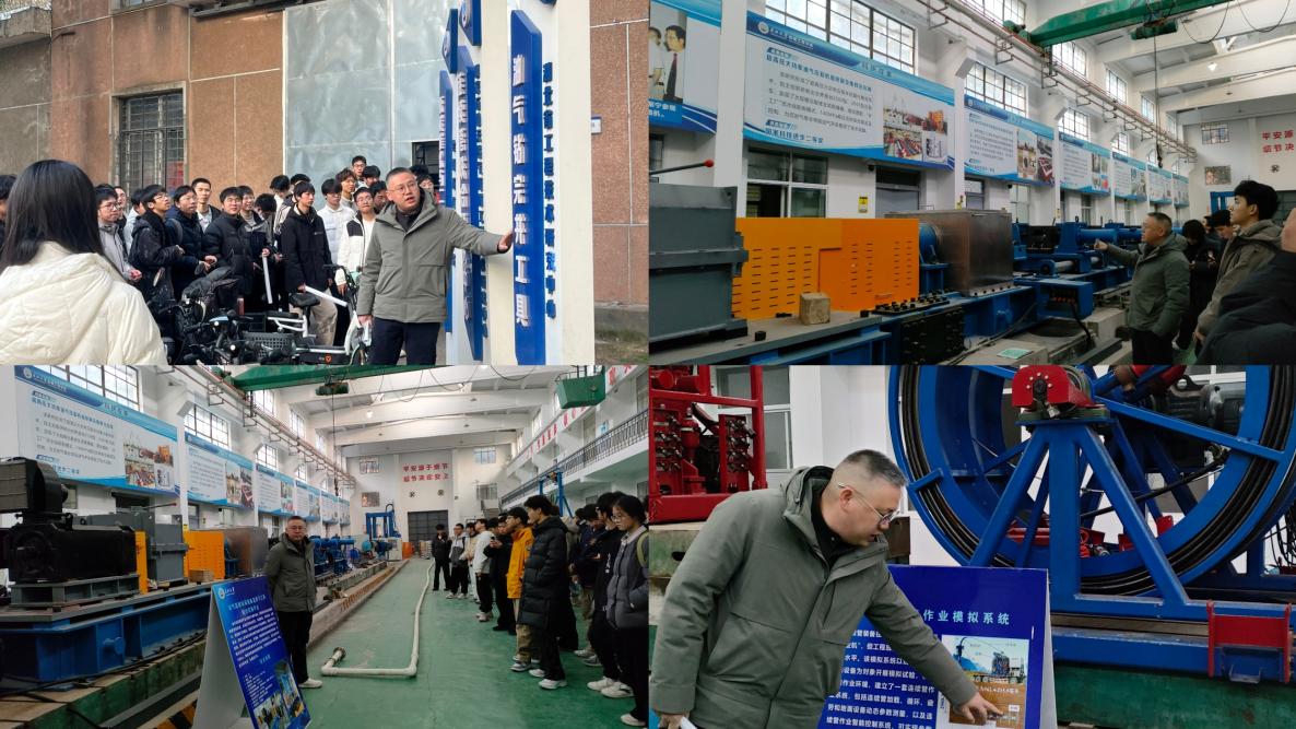 参观过程中,师生互动热烈。付老师以实验平台内陈列的国内首套大型连续管模拟测试装备为例,激励同学们要勇于创新、敢于实践、严谨求实。他勉励大家用实干精神和真才实学武装自己,为学校“双一流”建设及社会主义现代化建设贡献青春力量。