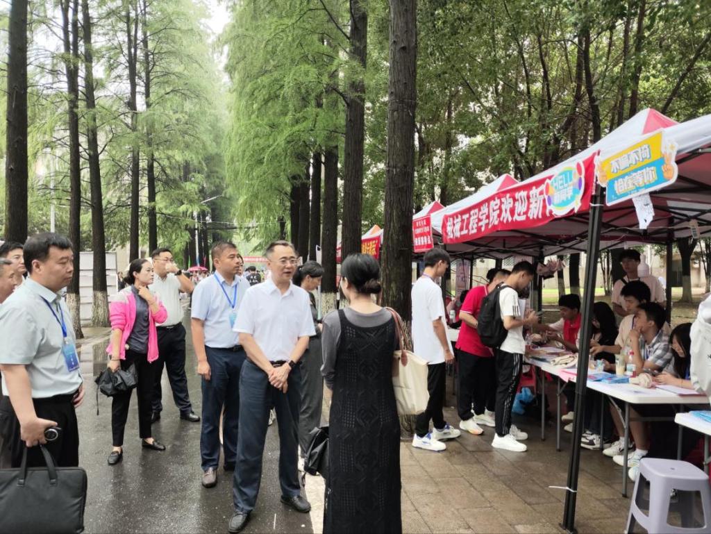 学校和学院领导对此次迎新工作高度重视。9月14日,校党委书记王建平、副校长许锋亲临迎新现场,亲切慰问坚守在一线的工作人员和志愿者,对迎新工作的有序开展给予充分肯定。他们还与新生辅导员深入交流,详细了解新生报到情况。与此同时,学院党委书记杨德强、副院长吕志鹏、刘先明、党委副书记丁明霞等领导也来到迎新点视察,仔细询问报到流程、物资配备等各个环节的情况,并与新生及家长亲切交谈,再三嘱咐工作人员要全力以赴做好服务保障工作。