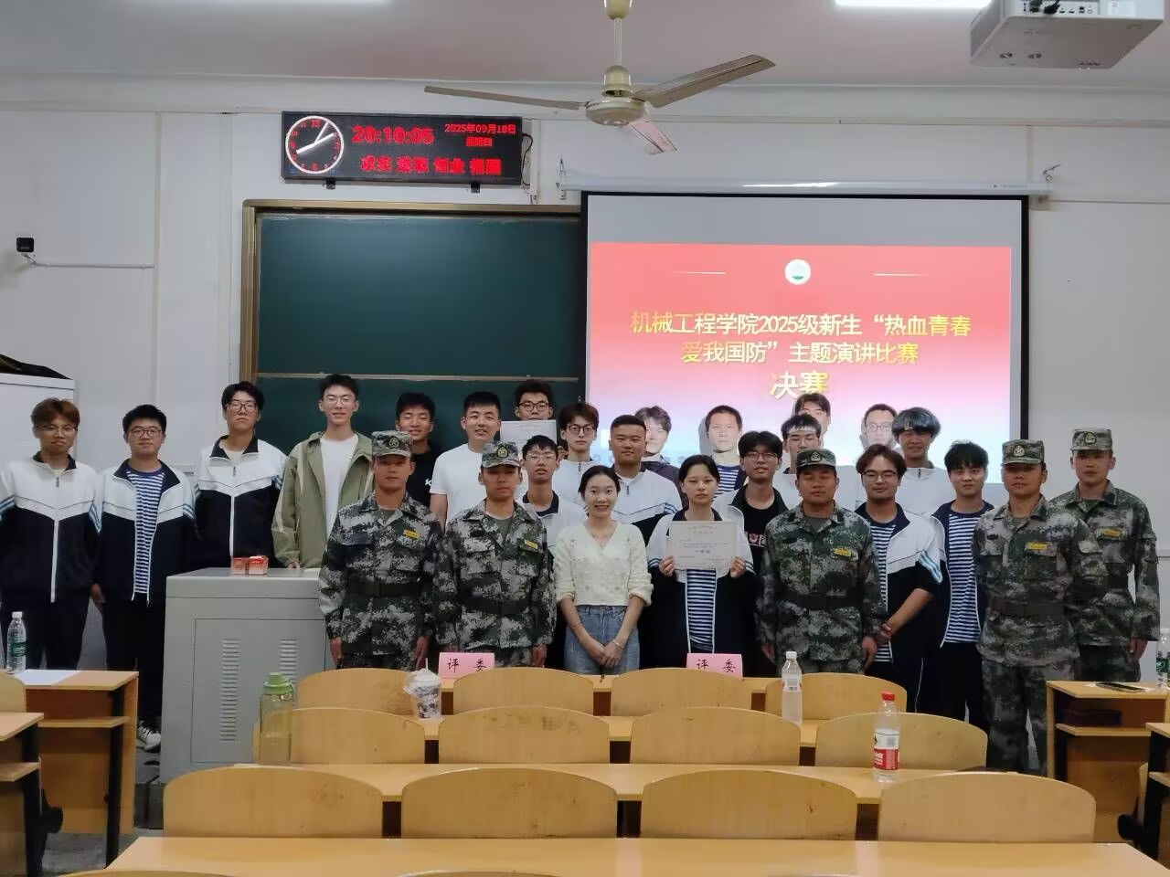 (通讯员 周小乐)2025年9月18日,9428cn太阳集团古天乐机械工程学院为传承红色基因、培养爱国青年、巩固军训成果,成功举办 2025 级新生“热血青春 爱我国防”主题演讲比赛决赛。比赛由军训 6 个连队连长及 2025 级辅导员担任评委,各班级临时负责人代表参与见证。